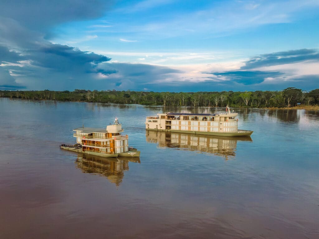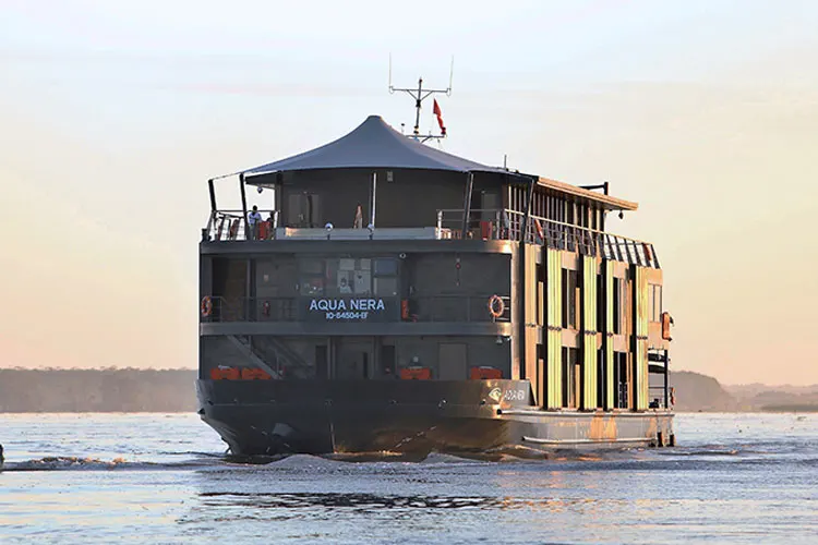 Aqua Nera is a 205-foot luxury riverboat offering an elegant and contemporary way to experience the Peruvian Amazon. With 20 design-forward suites created by renowned architects Noor Design, the vessel blends modern sophistication with local heritage, featuring decor inspired by the rubber boom era and the cultural influences of Portugal, Spain, and Peru. Guests enjoy spacious indoor lounges, a dining room showcasing cuisine by award-winning chef Pedro Miguel Schiaffino, and twice-daily excursions led by expert naturalist guides in small groups. Aqua Nera is built to the highest safety standards and provides an intimate, enriching journey through the world’s most biodiverse rainforest.