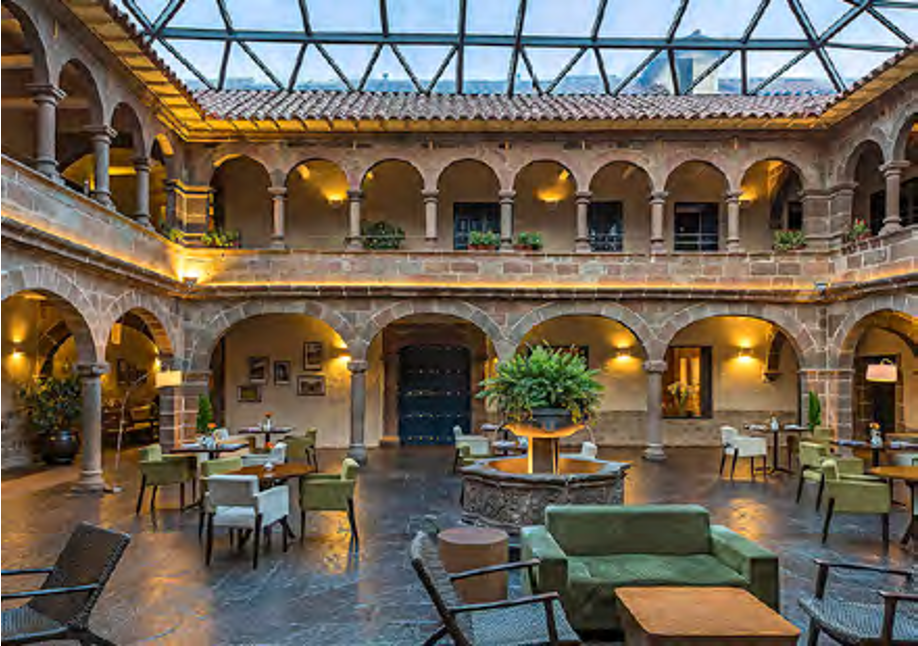 The centrally located Novotel Cusco hotel is the perfect base for exploring this historic city and its surrounding wonders. Nestled in the heart of Cusco, the hotel seamlessly blends colonial charm with modern comforts. The architecture reflects a harmonious fusion of old and new, and this unique style extends into the spacious, elegantly appointed rooms, each equipped with free Wi-Fi to keep you connected during your stay. After a day of adventuring through the vibrant streets and ancient ruins of Cusco, unwind in the serene ambiance of the hotel’s lush courtyard. Relax under the shade of the canopy on the patio of this beautifully restored colonial house while sipping a traditional coca tea.