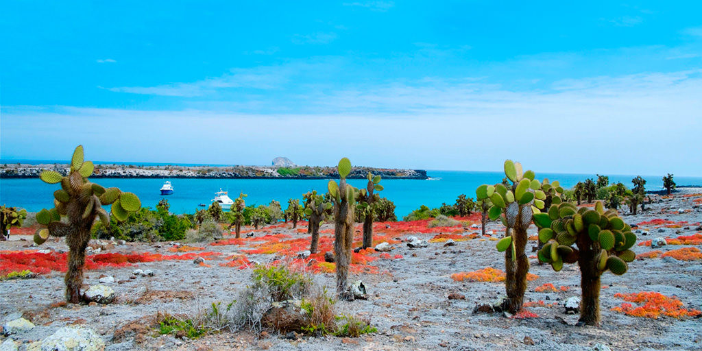 Today you’ll visit Santa Fe, one of the oldest uninhabited islands in the Galapagos. After the morning’s post-breakfast private drive and shared boat ride accompanied by your private guide, you’ll disembark at 10:00 AM (wet landing) at Barrington Bay, walking past sea lions as you approach the trailhead. From here your guide will lead you along two paths. One trail hugs the bay through a forest of Opuntia cacti; the other traces the coastal cliffs for a view of the bay and neighboring islands.